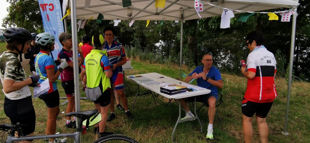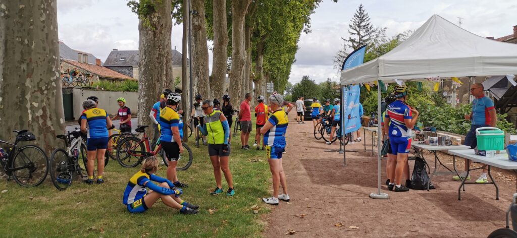 Dernier ravito à Lencloître avant d’attaquer la côte de Marigny-Brizay, principale difficulté de l’étape.