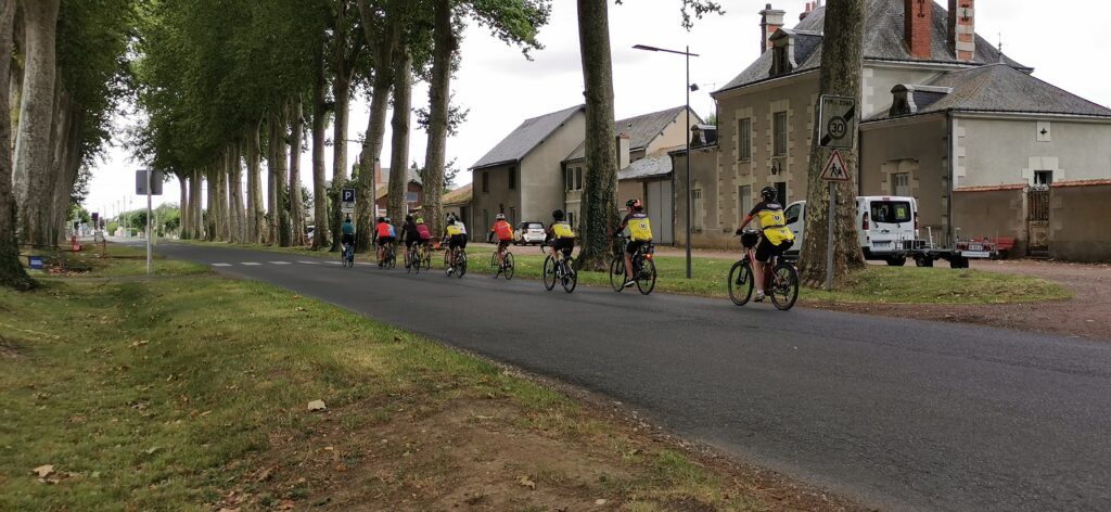 La météo est excellente, le vent favorable, le groupe s’élance à bonne allure et au bout de quelques km, un 2ème groupe se forme. Premier arrêt ravito à Chinon, puis à Richelieu pour la pause pique-nique, où d’autres participantes nous rejoignent pour la dernière partie, petit parcours de 65 km. Le parcours est très roulant, mais le vent est un peu plus fort.